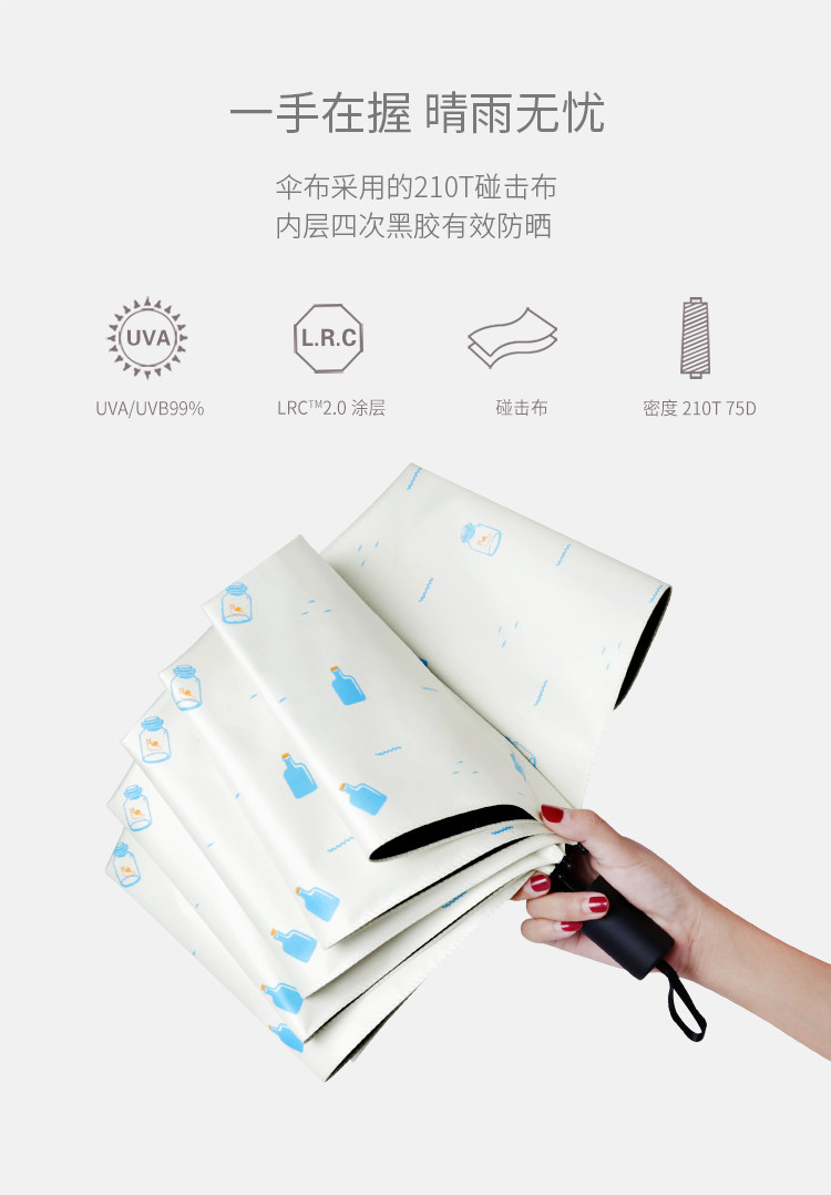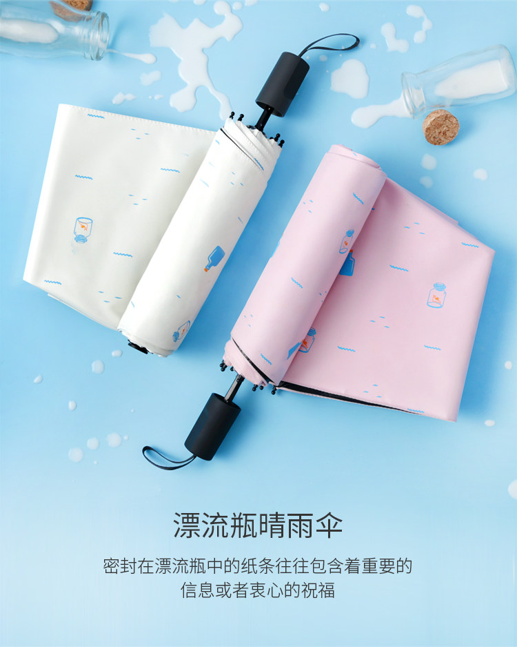小清新漂流瓶雨伞女男晴雨两用韩国三折叠太阳伞遮阳防晒防紫外线