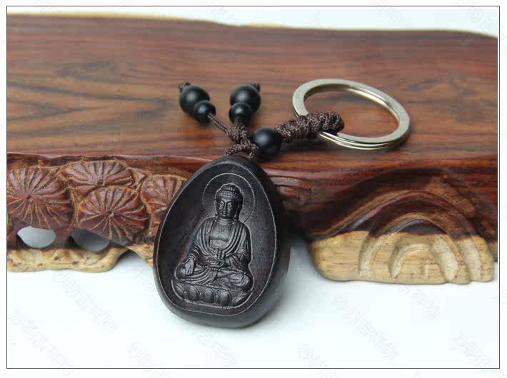 开光阿弥陀佛菩萨吊坠乌木钥匙扣生肖狗猪本命佛守护神挂坠
