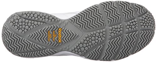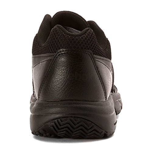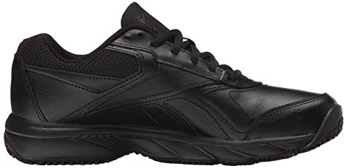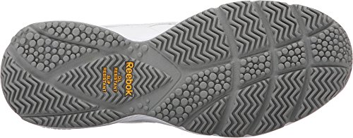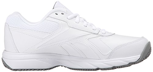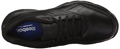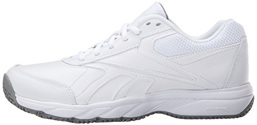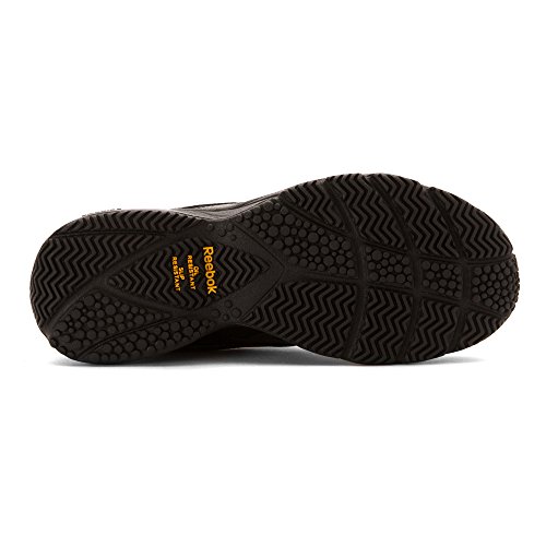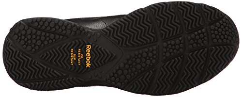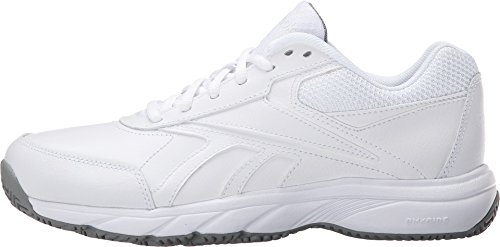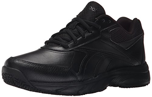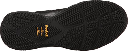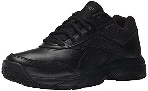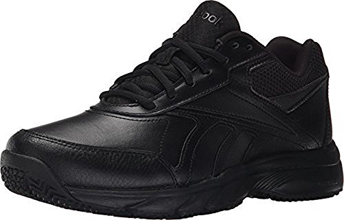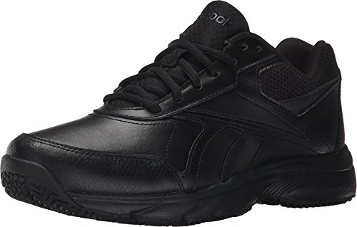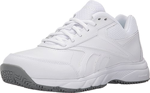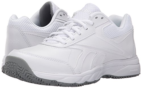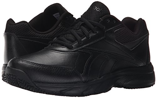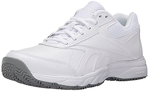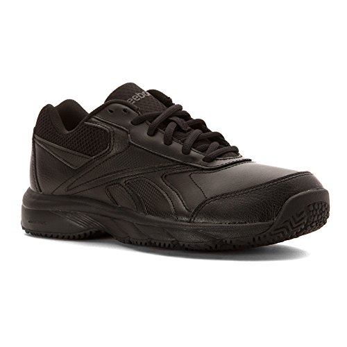 Studio : Reebok Publisher : Reebok Binding : Shoes Product Description If you work hard and want a shoe packed with great comfort, these Reebok Work N Cushion kicks deliver. A slip-resistant outsole gives great traction and durability, while the leather upper offers support. Plus, the beveled heel construction enhances your walking stride. Wide sizing available. 0