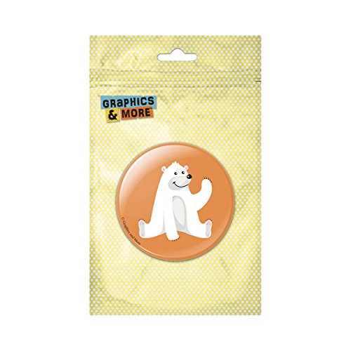(Graphics and More)/Accessories/Hair Accessories/DIRECT FROM USA/White Polar Bear Cartoon on Orange Pinback Button Pin Badge