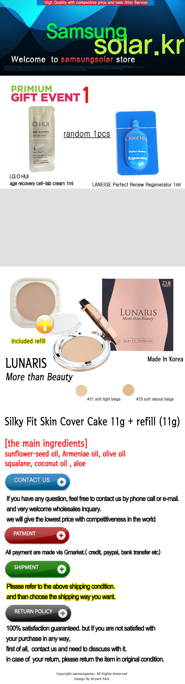 [LUNARIS] Silky Fit Skin TwinCake 11g + 11g (refill) * face foundation