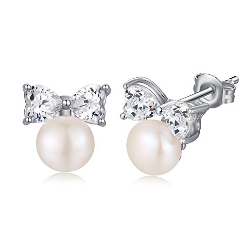 -. Feature : 【素 材】:シルバー925 、淡水パール、CZキュービックジルコニア / 【パールサイズ】:直径約7.5-8mm / 可愛くて高級感がある淡水真珠+リボン / キラキラしてどんな服もどんな場合も似合うリボンパールピアス / バレンタインデー、誕生日、結婚式、記念日などに最適なプレゼントです。