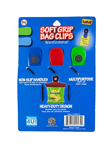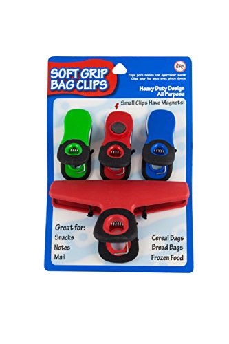 Items 4U! Soft Grip Bag Clips, Assorted Sizes, Assorted Colors, 1-Pack (4 Clips in total)