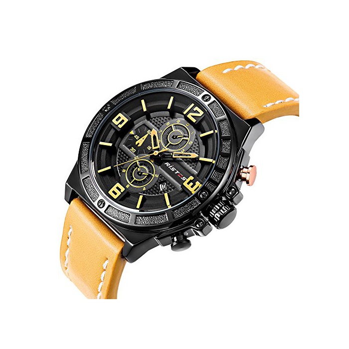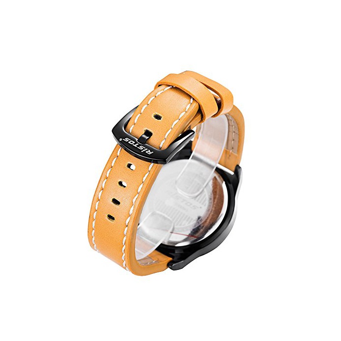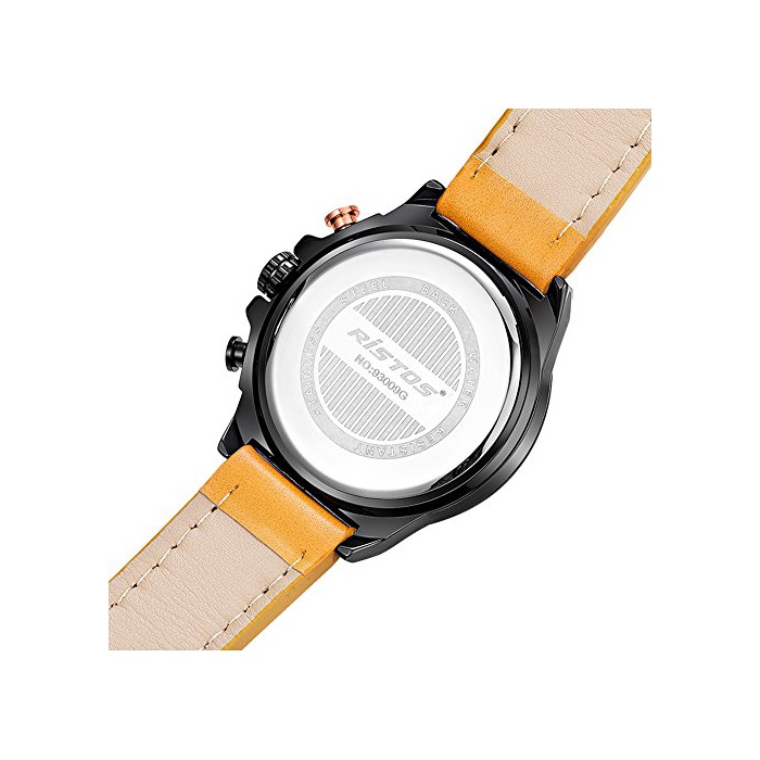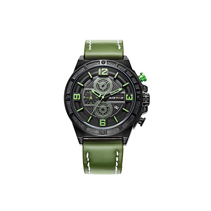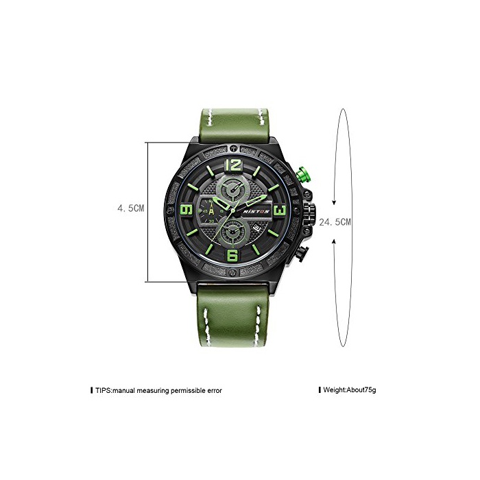 RISTOS Rockyu 감정 브랜드 인기 손목시계 맨즈 레이디스 스포츠 워치 30M 방수 내구 캘린더 야행 포멀 사파이어 유리 녹색 그린 레더 가죽 밴드 [병행수입품]