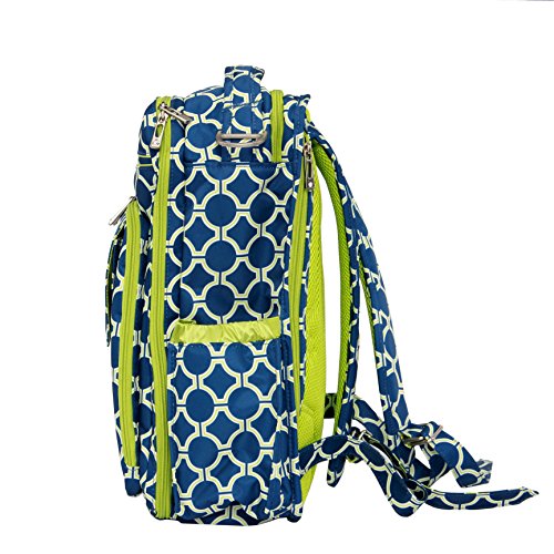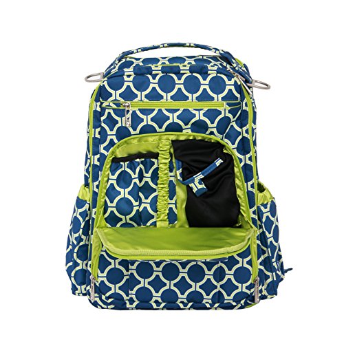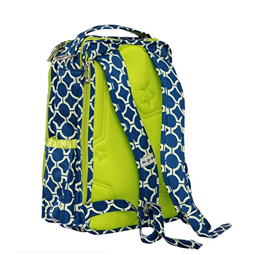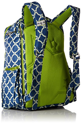 The Ju-Ju-Be Be Right Back Backpack Diaper Bag is chic, smart and functional with added innovation and versatility. The Be Right Back is everything you want in a backpack diaper bag, but with stylish design, ergo straps and breathable mesh to keep you comfortable! The Be Right Back is great for adventures, day trips, or everyday outings. The lining is protected with Agion natural antimicrobial treatment, which inhibits and reduces the growth of odor causing bacteria, mold and mildew. The outer fabric is treated with Teflon fabric protector, making it easy to repel stains and keep it clean. The front "mommy" zippered pocket is large enough to hold smartphones, wallets, keys and other personal items. Inside are (2) smaller pockets with a key fob stretch cord and a sunglass holder. A small external zippered pocket is constructed with soft felt that's perfect for small delicate items. The main zippered pocket is large enough for diapers, wipes, extra clothes and other items needed when you're on the go. "Smart" pockets are located on the front and top of the bag, perfect for storing additional diapers or wipes with easy accessibility. The back zippered pocket has an 11.5-inch opening that's large enough for your tablet or children's books and includes a matching memory foam changing pad. Bottle pockets are located on either side of the bag and insulated to keep your items hot or cold. The ergonomically curved shoulder straps with textured fabric underneath prevent the straps from sliding off your shoulders. This bag is machine washable and measures 12-inches by 16-inches by 5-inches in size. The Ju-Ju-Be Be Right Back Backpack Diaper Bag comes with a 90-day limited warranty that protects against manufacturing defects.Feature