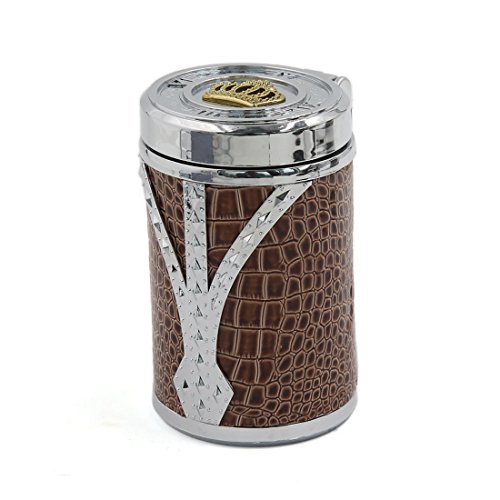-. Feature : Product Name: Car Ashtray; Material: Plastic,Faux Leather / Package Content: 1 x Car Ashtray / Color: Brown / Dimension: 110 x 68mm/ 4.3 x 2.7 inches(H*Bottom Dia) / LED Color: Blue