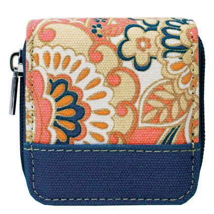 Contact lens case is made of printed canvas with an interior mirror. Contains contact solution bottle and contact case. Zipper closure. 3 5/8" width x 2 3/8" height 0
