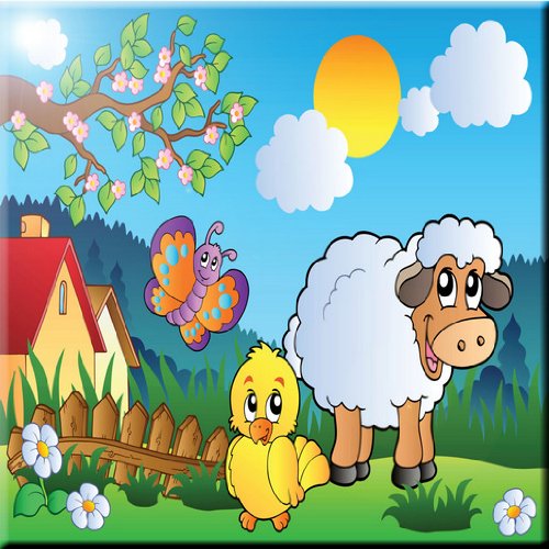 Rikki Knight RK-8intilec-8890 8" X 8" Meadow with Happy Spring Animals Design Ceramic Art Tile