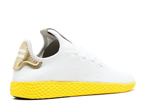 Studio : ADIDAS Publisher : ADIDAS Binding : Apparel Product Description Back for another round, Pharrell Williams and adidas roll out a new Stan Smith-inspired silhouette that continues to push messages of unity. The Pharrell x adidas Tennis Hu highlights the Spring 2017 collection, featuring woven Primeknit construction on the upper that adapts to the shape of your foot. This version appears in a White/Yellow-Metallic Gold colorway. The shape and silhouette are akin to the Stan Smith, while details like the slip-on ankle, perforated Three Stripes branding, and Pharrell logos on the grey tongue and Metallic Gold heel. In a surprising turn of events, this edition of the Human Race shoe sports an EVA midsole and outsole, as opposed to the Boost cushioning seen in the past. An unique insole shows a diagram of the foot with a Chinese pressure point map to complete the look. 0