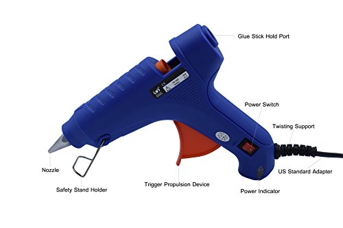 Easy to Use - ON/Off Switch design,no worried to handle the plug power.; easy squeeze trigger; insulated and interchangeable nozzle; 1.4m (55inch) cord; a stand to keep the glue gun stable and upright