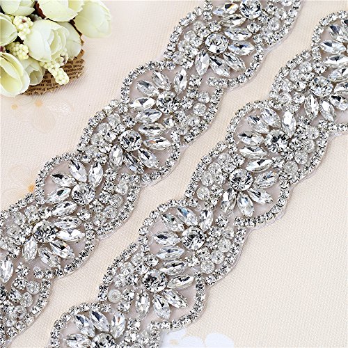 Packing Including: 2 x XINFANGXIU Rhinestone applique 2 x Separating satin sashes (white ivory) 1 x User manual 1 x Extra small gifts 1 x Sewing tool and some loose stones (In case needed replaced)