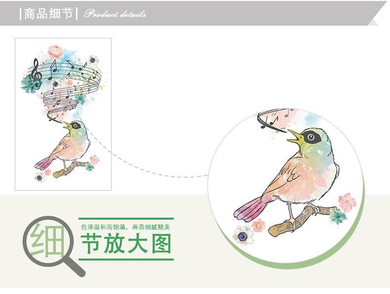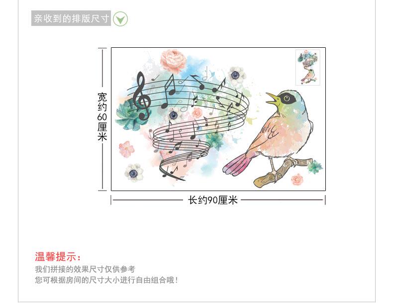 时尚客厅卧室音符鸟儿自粘墙纸贴画可移除创意个性彩绘艺术墙贴纸