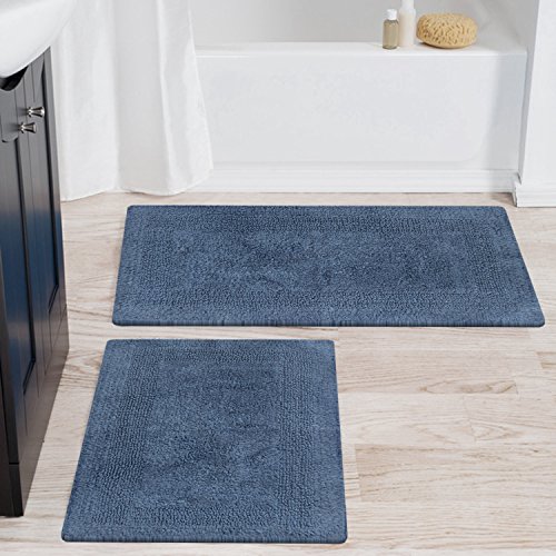Chardin home 2 Piece Arizona Reversible Bath Rug Set (21"x34" & 17"x24") Provencial Blue