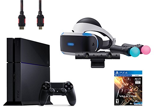Includes: VR headset, Processor unit, VR headset connection cable, HDMI cable, USB cable, Stereo headphones, AC power cord, AC adaptor, PlayStation VR Demo Disc, PlayStation Camera, 2 PlayStation Move motion controllers, and Sony PlayStation 4 Pro - 1TB and VR Game Disc PSVR EVE: Valkyrie - PlayStation 4