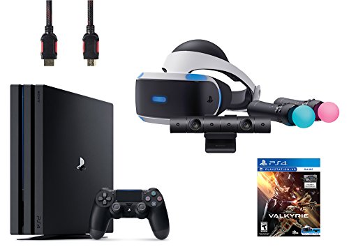 Includes: VR headset, Processor unit, VR headset connection cable, HDMI cable, USB cable, Stereo headphones, AC power cord, AC adaptor, PlayStation VR Demo Disc, PlayStation Camera, 2 PlayStation Move motion controllers, and PlayStation 4 Pro - 1TB,VR game disc PSVR EVE: Valkyrie - PlayStation 4