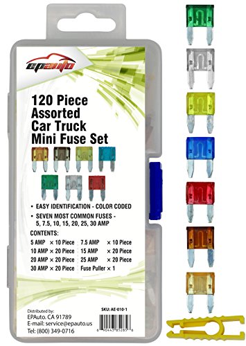 120 Pieces - EPAuto Assorted Car Truck Mini Blade Fuse Set (5 / 7.5 / 10 / 15 / 20 / 25 / 30 AMP)