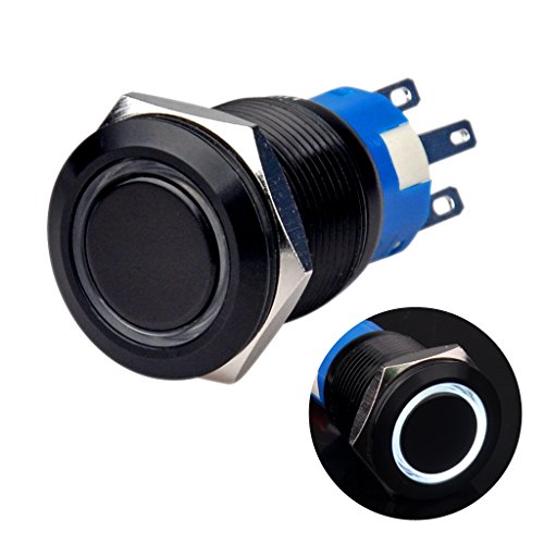 Ulincos Momentary Pushbutton Switch U19C3 1NO1NC Black Metal Shell with 12V White LED Ring Suitable for 19mm 3/4" Mounting Hole (White)