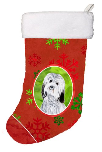 Caroline's Treasures Havanese Red Snowflakes Holiday Christmas Stocking, 11 x 18", Mulitcolor