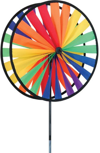 Studio : Premier Kites Publisher : Premier Kites Binding : Lawn Patio Product Description This rainbow spinner wheel is made with fade-resistant dupont solarmax fabric. Perfect for the windgarden triple spinner that withstand daily UV rays, rain and snow. Wheel have sails that track the wind like weather vanes. Great for decks, home decor and garden decor. Comes with double spining wheel. 0