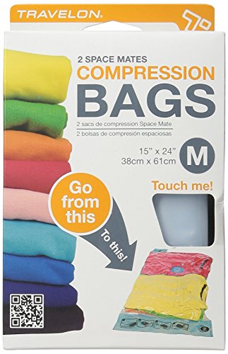 -. Binding : Apparel -. Brand : Travelon -. Department : unisex-adult -. Feature : Easy to seal closure / Triples storage space; Includes 2 of same size / Can be used with or without vacuum cleaner / Airtight and leak proof / Reusable -. Label : Travelon -. Manufacturer : Travelon -. PackageQuantity : 1 -. ProductGroup : Apparel -. ProductTypeName : LAGE -. Publisher : Travelon -. Size : One Size -. Studio : Travelon -. Title : Travelon 2 Space Mates Compression Bags Medium