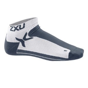 2XU Men's Performance Low Rise Socks, White/Blue Stone, Small/Medium