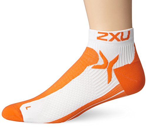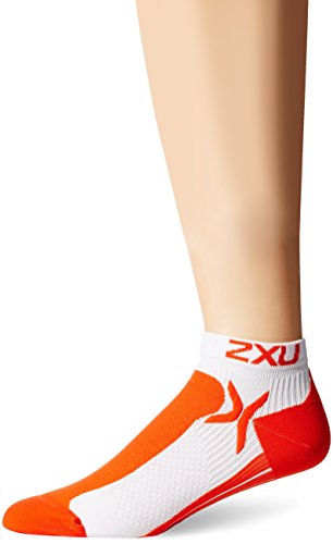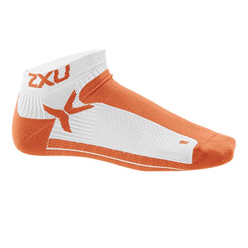 2XU Men's Performance Low Rise Sock, White/Blazing Orange, Large/X-Large