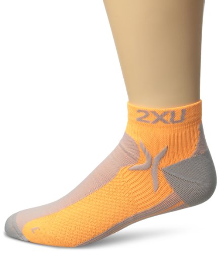 2XU Men's Performance Low Rise Sock, Neon Orange/Concrete Grey, Large/X-Large