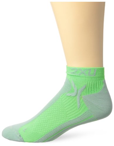 2XU Men's Performance Low Rise Socks, White/Green, Large/X-Large