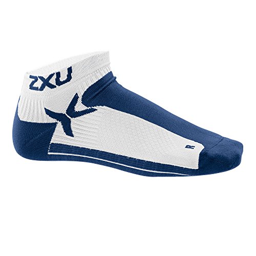 2XU Men's Performance Low Rise Sock, White/Nautic Blue, Large/X-Large