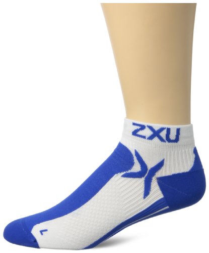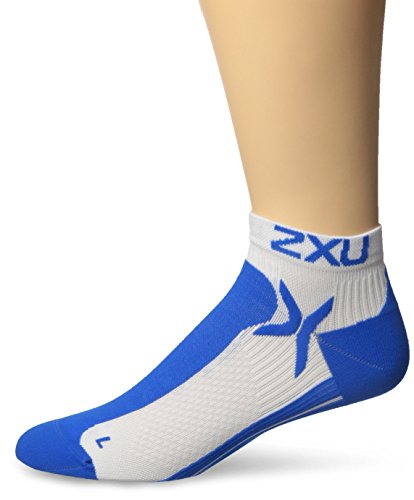 2XU Men's Performance Low Rise Socks, White/Cobalt Blue, Small/Medium