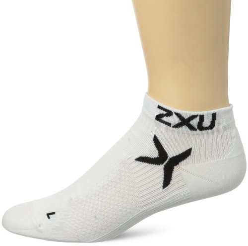 2XU Men's Performance Low Rise Socks, White/Black, Large/X-Large