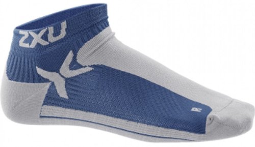 2XU Men's Performance Low Rise Socks, Denim/Silver, Large/X-Large