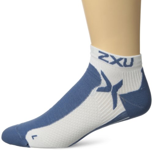 2XU Men's Performance Low Rise Sock, White/Blue Slate, Small/Medium