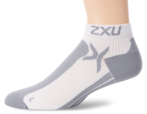 2XU Men's Performance Low Rise Socks, White/Grey, Large/X-Large