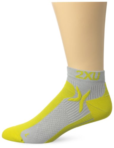 2XU Men's Performance Low Rise Sock, Concrete Grey/Neon Yellow, Large/X-Large
