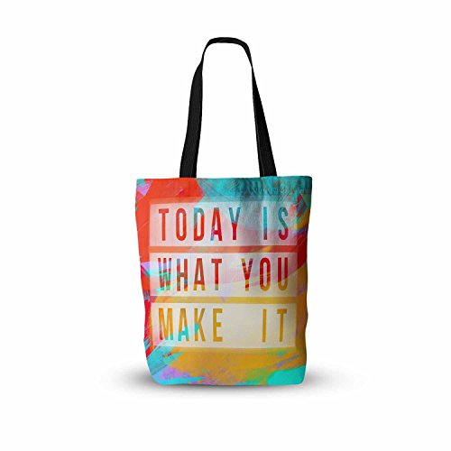 KESS InHouse AlyZen Moonshadow "Today Is What You Make It Red" Multicolor Orange Typography Everything Tote Bag, 13" x 13", Multicolor