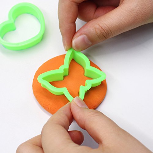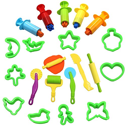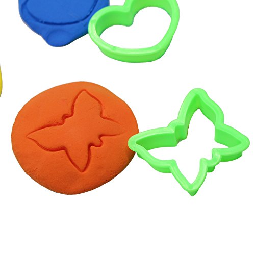 Dough Tools Kit: 21 pieces in one set Models and Molds (Star,Moon, Love heart, Butterfly, Tree, Animals etc.) and Dough Tools. All of them are assorted color.