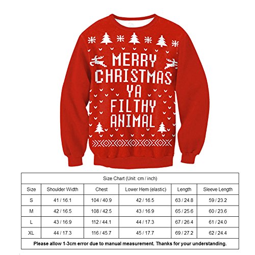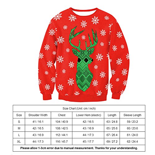 Specification: Item Type: Christmas Sweatshirt Materials: polyester spandex Color: multicolored Optional sizes: S, M, L, XL Package weight:345g Please allow 1-3cm error due to manual measurement. Thank you for your understanding.