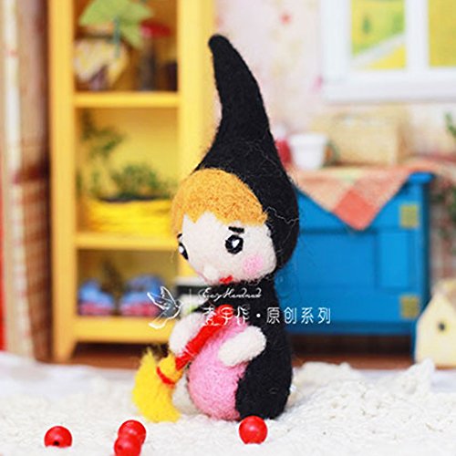 Artec360 Lovely Elves Felting Kits Dool Making Merino Wool Original with Tutorial, 3 Needles for Needle Felting Starter 2.5X1.4 Inch (Little Witch)