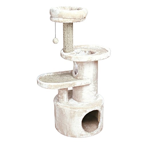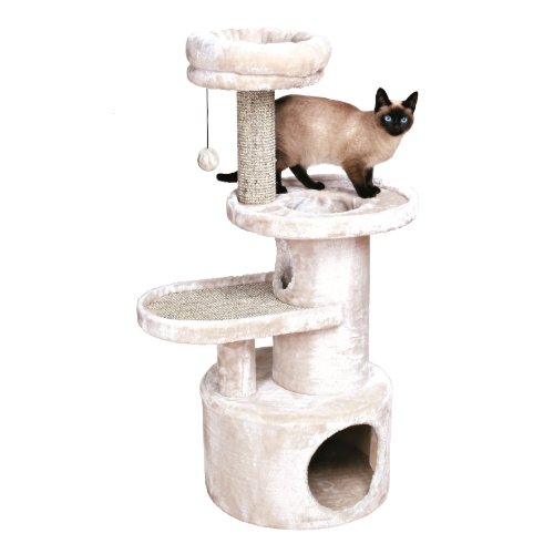 Studio : Trixie Pet Products Publisher : Trixie Pet Products Binding : Misc. Product Description The Trixie Alessio Cat Tree will provide endless opportunities for cats to play, explore, scratch or just relax. Felines can sharpen their claws on either the durable sisal scratching surface or post instead of on your furniture or carpet, giving them a healthy outlet for their scratching instincts. If a nap or a place to hide is in order, the cat can crawl inside the kitty condo and connecting tunnel. Both are covered with plush both inside and out, making them the perfect retreat. We've also provided multiple ways in and out so your feline can sneak in one way and pop out another for added adventure. Spunky cats can jump, climb or perch atop one of the plush platforms and lie in wait for unsuspecting prey or just enjoy the view. The top platform has a removable bed (machine washable) that can be used separately for extra comfort. We've even included a dangling pom-pom toy. The subtle earth tones of the sisal and plush fabric also make this cat furniture easy to integrate into your home decor. Suitable for cats of all ages and activity levels. Quick and easy assembly. One year warranty. Color: light gray. Dimensions (Inch): 18 x 18 x 44; post 3.5; platform with sisal scratching surface 17 x 12; tunnel 8 x 8 x 17; platform with removable bed 13 x 13. Weight: 26 pounds. 0