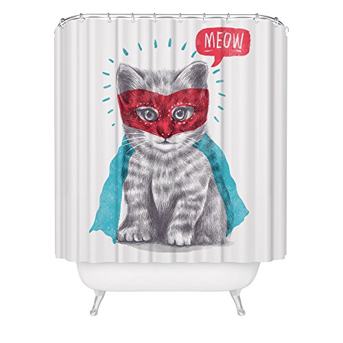 Cat Lover Shower Curtain Cute Funny Super Hero Kitten Feline Animal Meow White Fabric Bathroom Decor