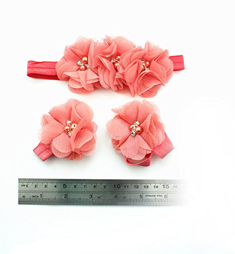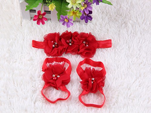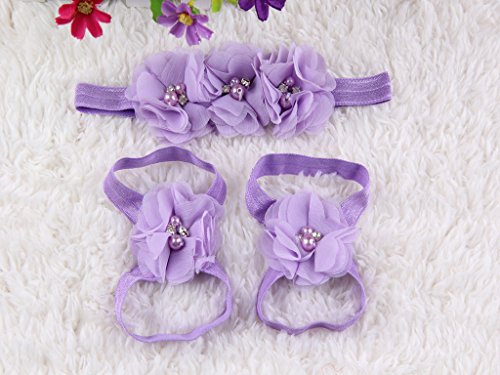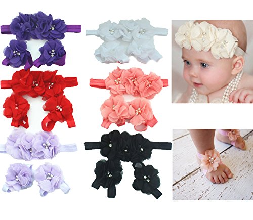 Baby Girl's Beautiful Flower Headbands and Baby Barefoot Sandals Flower set from CellElection(Packed with 6 set)