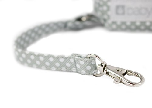 The durable and easy to use metal clasp, attaches securely to your diaper bag, purse, stroller, travel system and more! The strap ensures that your bag will never come loose or fall from your bag.