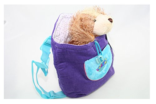 Add to your collection to build up your Webkinz virtual plush family. Dog size: 7.5" H 8" L. Knapsack measures 6.5" tall, 8.5" across, and 3.5" deep. Turquoise corduroy with green pocket on front. Green adjustable nylon straps. Lined with adorable polka dot fabric. Great gifts for kids of all ages.