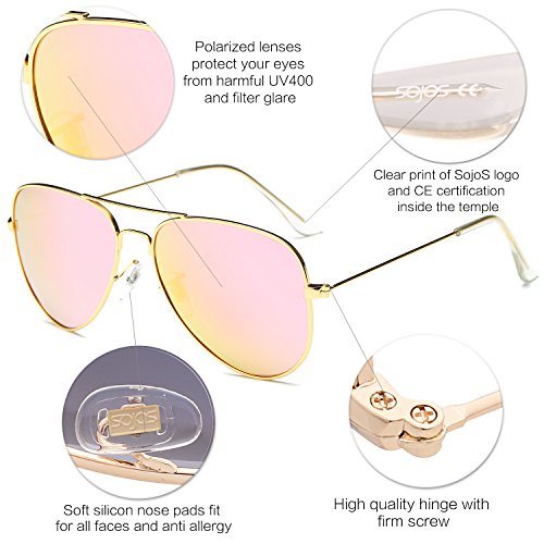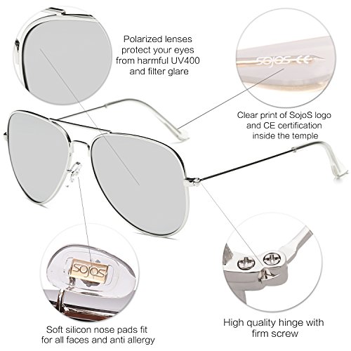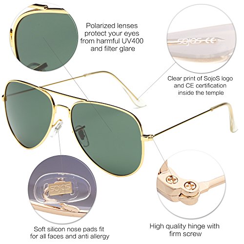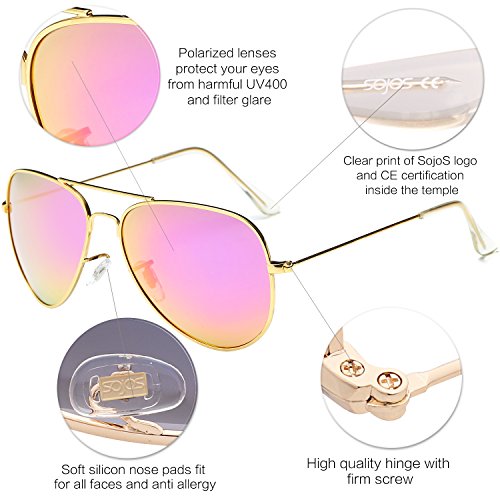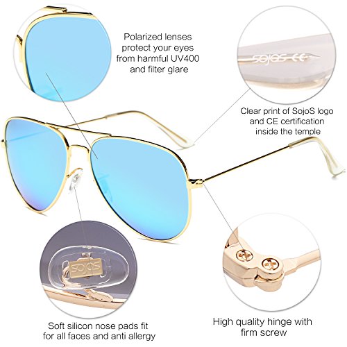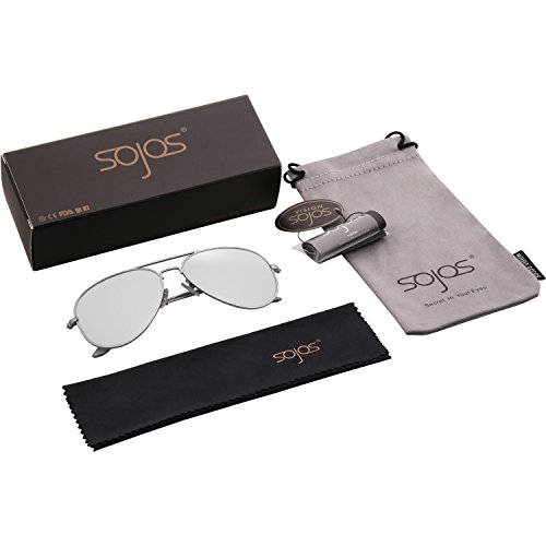 Product Description FIND SojoS Vision WORTH TO TRY AND TRUST SojoS Vision loves the sunshine, natural beauty, and of course - beautiful eyes. We design each of our glasses with comfort, lift, and spirituality in mind to fit your lifestyle. Our name was inspired by the secret in your eyes, coming from the Spanish 'ojos' (eyes). There is truly a story behind everyone's eyes, and we take pride in creating beautiful eyewear that not only protects, but showcases the mystery of your eyes. We believe... ? Different eyewear should bring you different emotions, and match your personality and lifestyle. ? 'The best doesn't always mean the most expensive - everyone has their own preference! ? Beauty follows you here. FEATURES ABOUT SJ1054 SojoS Classic Aviator Sunglasses! A true classic that has held its reign for over four decades, we are pleased to present our most popular mirrored aviator. Made with ideal shape, metal frame, reinforced metal hinges and full mirror polycarbonate UV protected lenses, so it is no surprise why it is in such high demand. WHAT YOU GET Sunglasses * 1 Soft Microfiber Pouch * 1 Soft Glasses Cloth * 1 Exquisite Packaging * 1 HOW TO CARE To avoid damage, never clean your sunglasses with paper towels or clothing, and also avoid using household detergents or soaps. While a few mild soaps don't harm lenses, today's extra strength soaps are powerful enough to slowly disintegrate lens. FIND OTHER SojoS Vision SUNGLASSES http://www.amazon.com/shops/sojosvision ADD TO CART RIGHT NOW! 0
