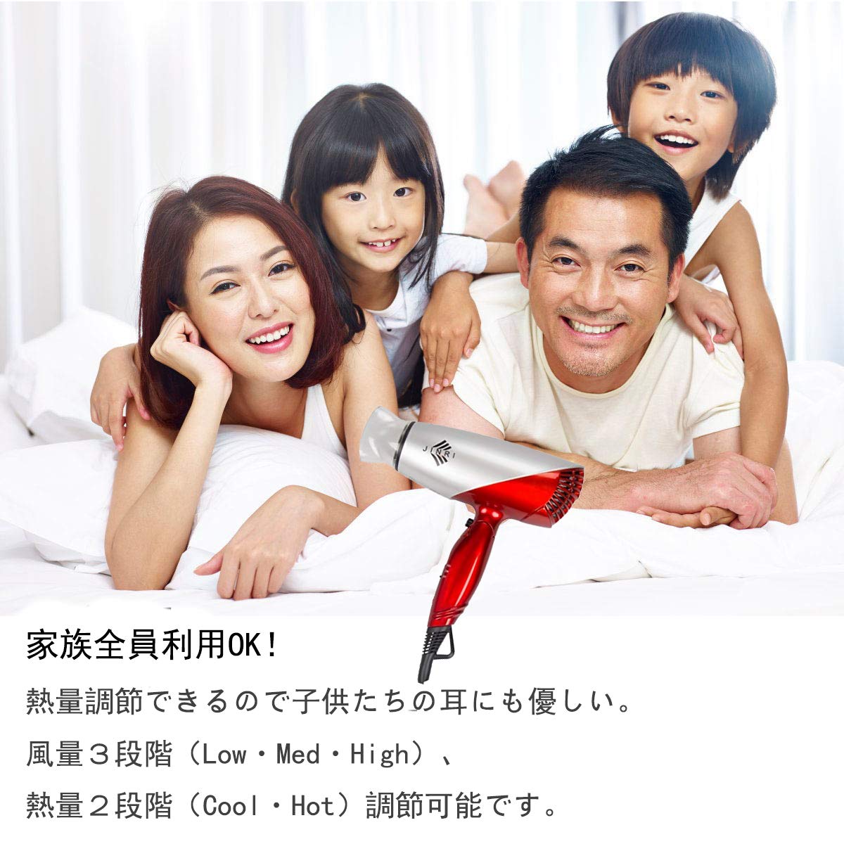 【 風量3段階・Cool・Hotモードに調節可能】 風量3段階(Low・Med・High)、熱量2段階(Cool・Hot)調節可能であり、季節より、好みより自由に調節できます。