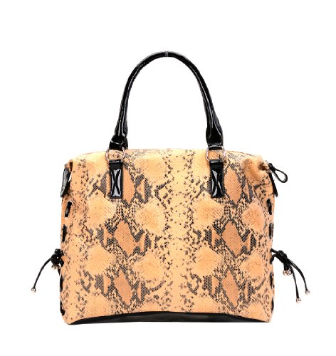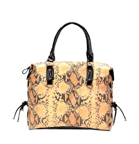 Large Yellow Snake Print Faux Leather Handbag By Fash
