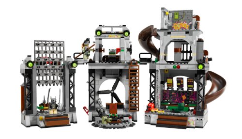 - Feature : Includes 6 minifigures: Splinter, Donatello, Leonardo, Shredder, 2 Foot Soldiers; Weapons include 2 silver swords,2 machine guns,golden sword,bo staff / Turtle Lair features a hidden door, lockable sewer entrance door, ladder, trap with barrel-dropping function, surveillance room, walkways / Also features slide with lever-activated elevation, fan room with exploding wall, weapon storage, convertible training platform with ramp / Lair also has a cage with dropping door and slide-out stairs / Turtle Lair measures over 9" (24cm) high, 18" (46cm) wide and 5" (15cm) deep