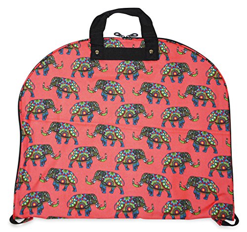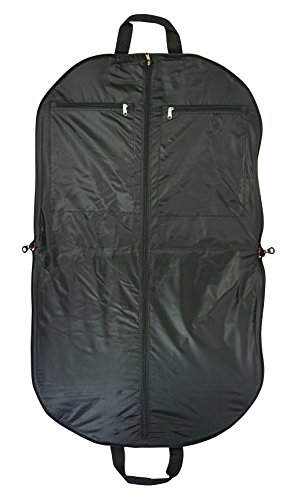 Product Description Take your dress clothes with you confidently on vacation with this stylish garment bag! This piece of lightweight luggage is great for jet setters and can be used for a quick, close by staycation or for a weekend excursion to your favorite retreat. Made out of durable 600 Denier Polyester fabric in a chic print. This garment bag folds in half and can be hung by its metal hook. The interior of this bag features multiple zipper pockets to hold shoes and accessories. Perfect for transporting cheer uniforms or theatre costumes to and from while keeping them clean and wrinkle free! Organize your closet and keep delicate, high quality items neat and pristine. 0