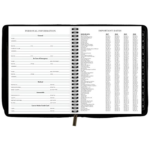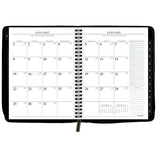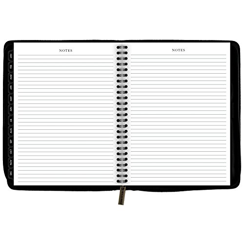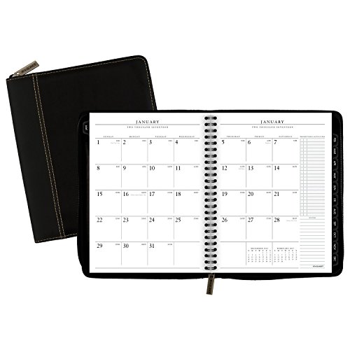 -. Feature : Includes 12 monthly spreads (January - December); Julian dates. / One month per two page spread with unruled blocks, plus three pages of lined note space. Includes extra space for P.R.Ioritized activities, and notes. Past and future month reference also shown for quick date checking. / Features a flexible cover made with deluxe black material, concealed wire and a zipper closure. Mylar-reinforced tabs make locating the current month a breeze.